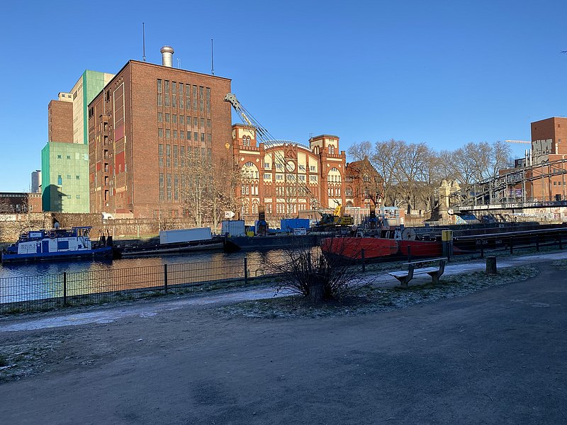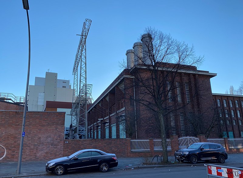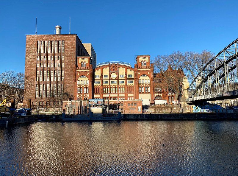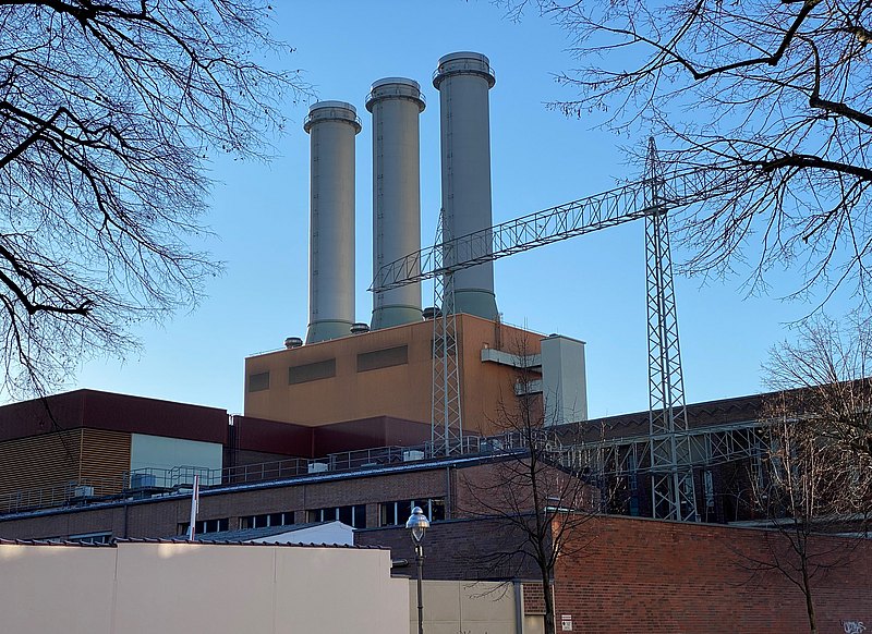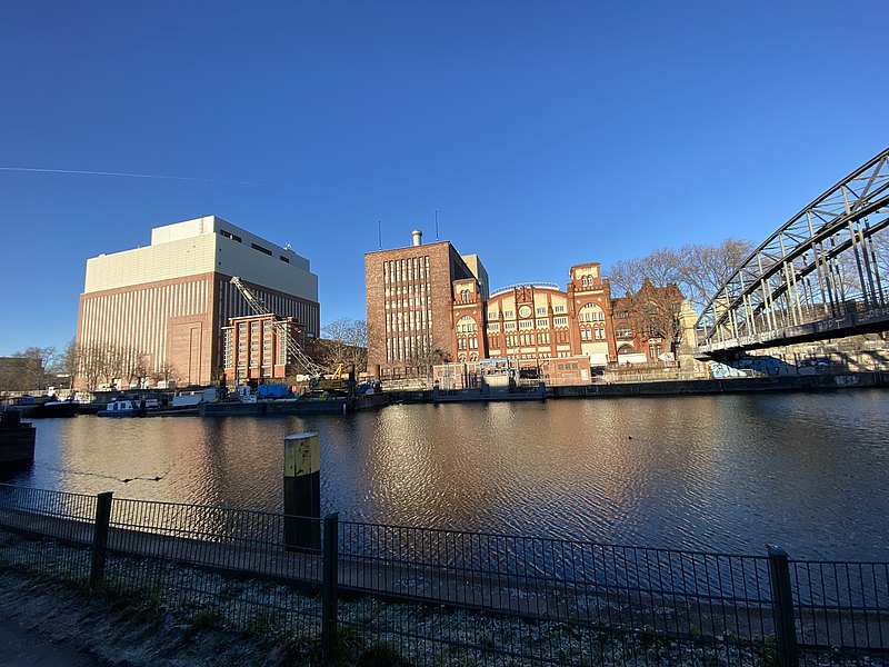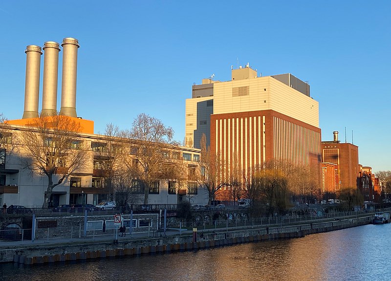 Unten ist aus verschiedenen Perspektiven betrachtet das Heizkraftwerk Charlottenburg zu sehen. Ganz in der Nähe befindet sich das Schloss Charlottenburg mit seinem weitläufigen Schlossgarten.